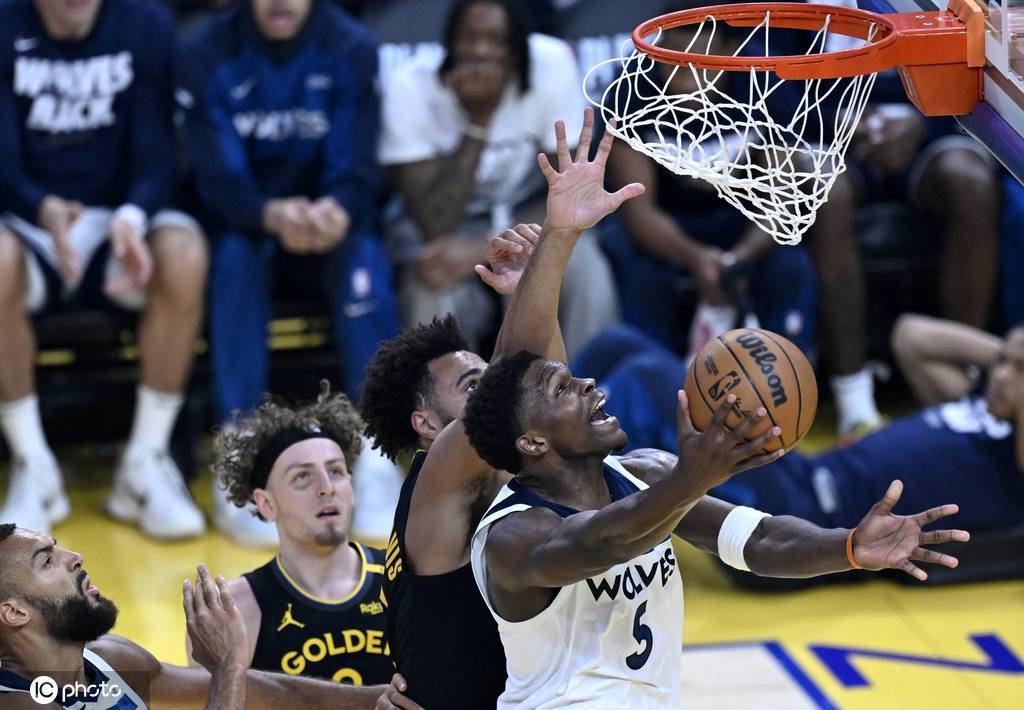 次节,卢尼内线抛射入网,又是勇士率先发力。但很快,里德和沃克的三分命中,狼队夺回优势。本节中段,兰德尔的无差别错位进攻继续奏效,个人已经拿到19分。迪温琴佐的三分球也能命中,给予主将火力支援。但本节后段,科尔祭出联防战术,暂时冻结了兰德尔的强攻,在反击中,勇士也一次次强硬的造成犯规走上罚球线,特别是库明加,他在勇士强解相当困难的阶段,靠着不断的罚球为主队累加分数。不过,狼队丝毫没有慌张,爱德华兹的三分连中又为客队止血,半场打完,森林狼58-60暂时落后。