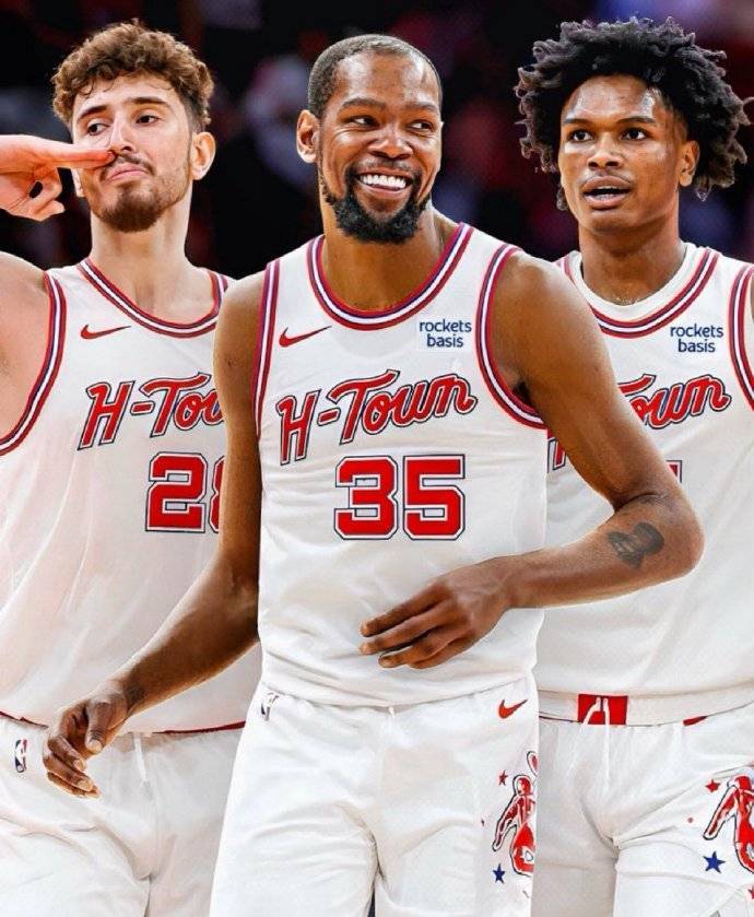 火箭队成为KD6年以来第4支效力的球队,此前3支分别是勇士队、篮网队和太阳队。其中,KD2023年被篮网队交易至太阳队,今年被送至休斯顿。24-25赛季,KD为太阳队打了62场常规赛,场均出场36.5分钟,交出26.6分6.0篮板4.2助攻1.2盖帽的数据,三分球命中率43.0%。(搜狐体育原创:jim)