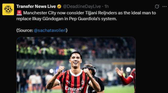 在引援方面,曼城高层已将补强中场视为首要任务。4月14日,知名记者Sacha Tavolieri在《天空体育》专栏撰文确认,曼城已把AC米兰核心蒂贾尼·赖因德斯列为接任京多安的第一目标,并准备为其支付大手笔转会费。26岁的赖因德斯本赛季代表AC米兰出战31场意甲,贡献7球3助攻,被专业数据机构评为意甲当前最佳中场。赖因德斯具备全能型属性,可以胜任中前场多个位置,本赛季主要司职后腰,防守端虽场均只有0.8次抢断、0.8次拦截,但其全面性令人印象深刻,尤其在关键比赛中总能展现极强的拼劲,与京多安风格颇为相似。此外,他被认为在紧急情况下能够临时代替罗德里,上场即战力毋庸置疑。